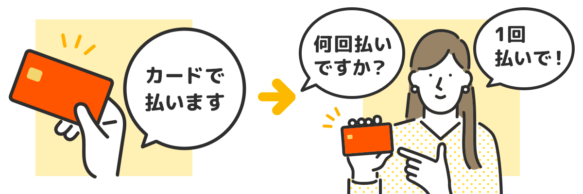 - 本カードをお店の方に提示して、「カードで払います」と伝えます。